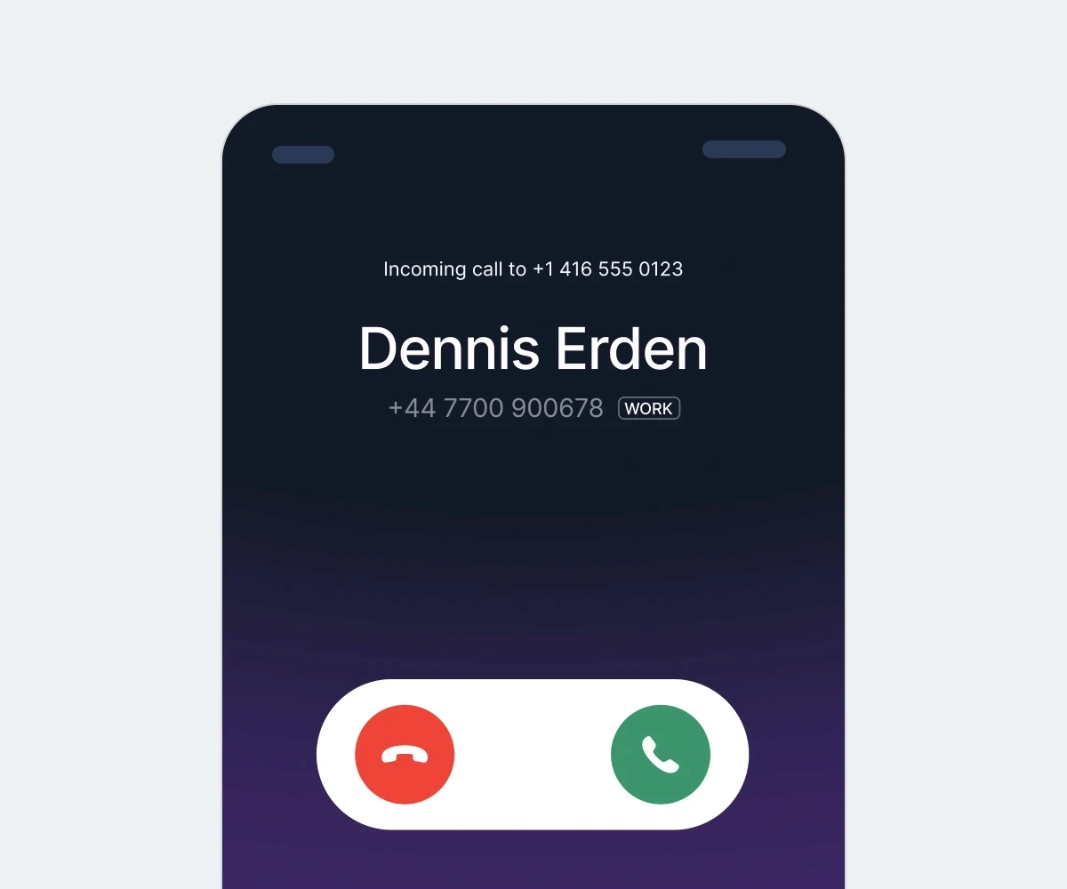 番号を連携そして認証すると、発信者番号を使用してアプリ内で直接通話できます。
