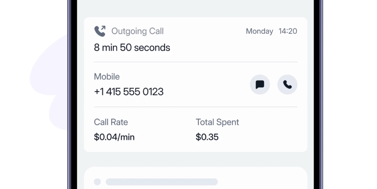 通話料金はご利用前に確認でき、1 分ごとにクレジットから課金されます。