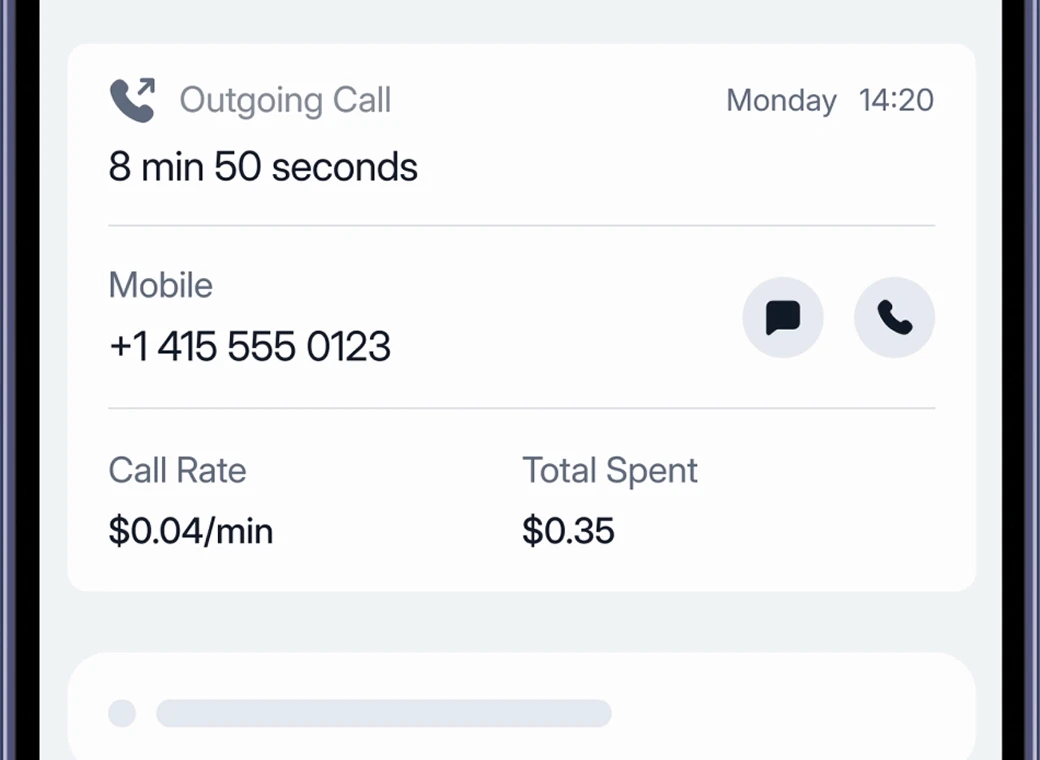 Roamless番号を購入することで、Roamlessアプリ内で通話およびSMSを直接受信できます。(なお、Roamless eSIMはデータ通信専用eSIMであり、専用の電話番号は付属していません。)