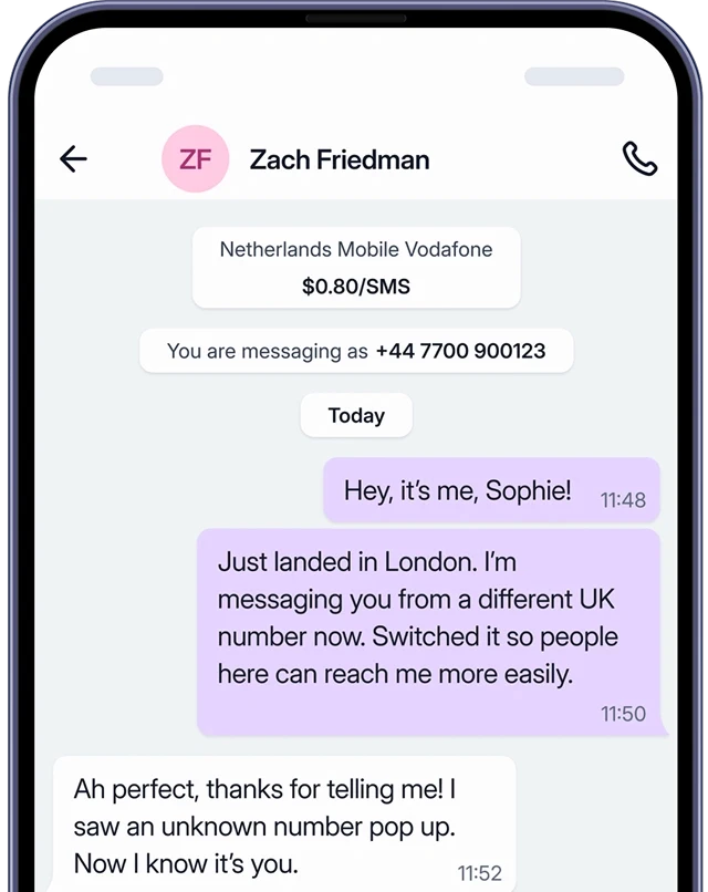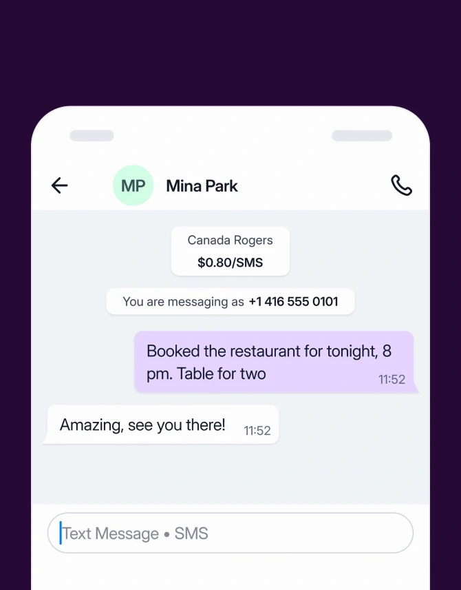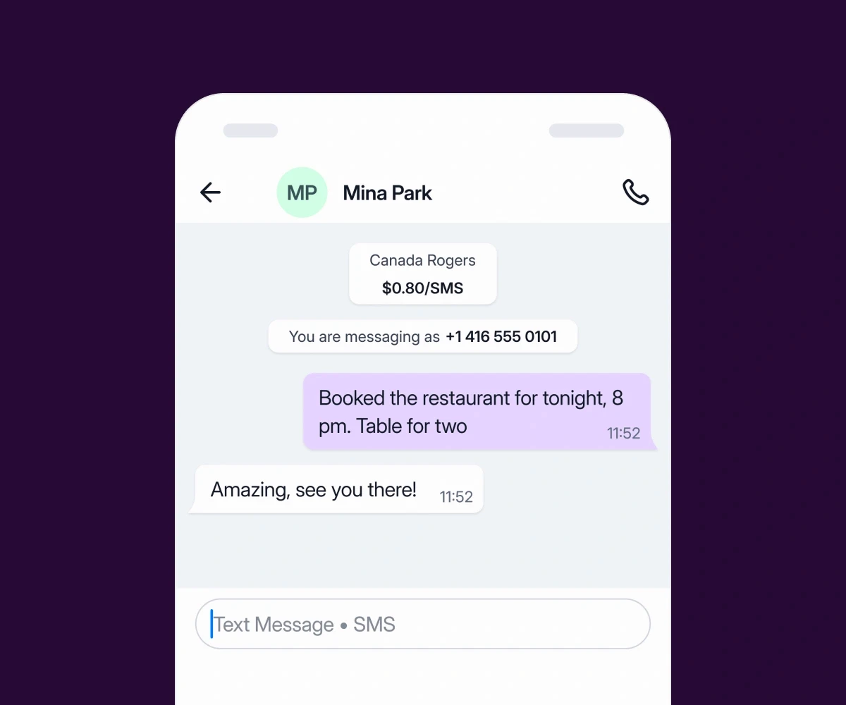 Roamless 番号を使って SMS を送受信。認証済みの番号で SMS を送信できます。
