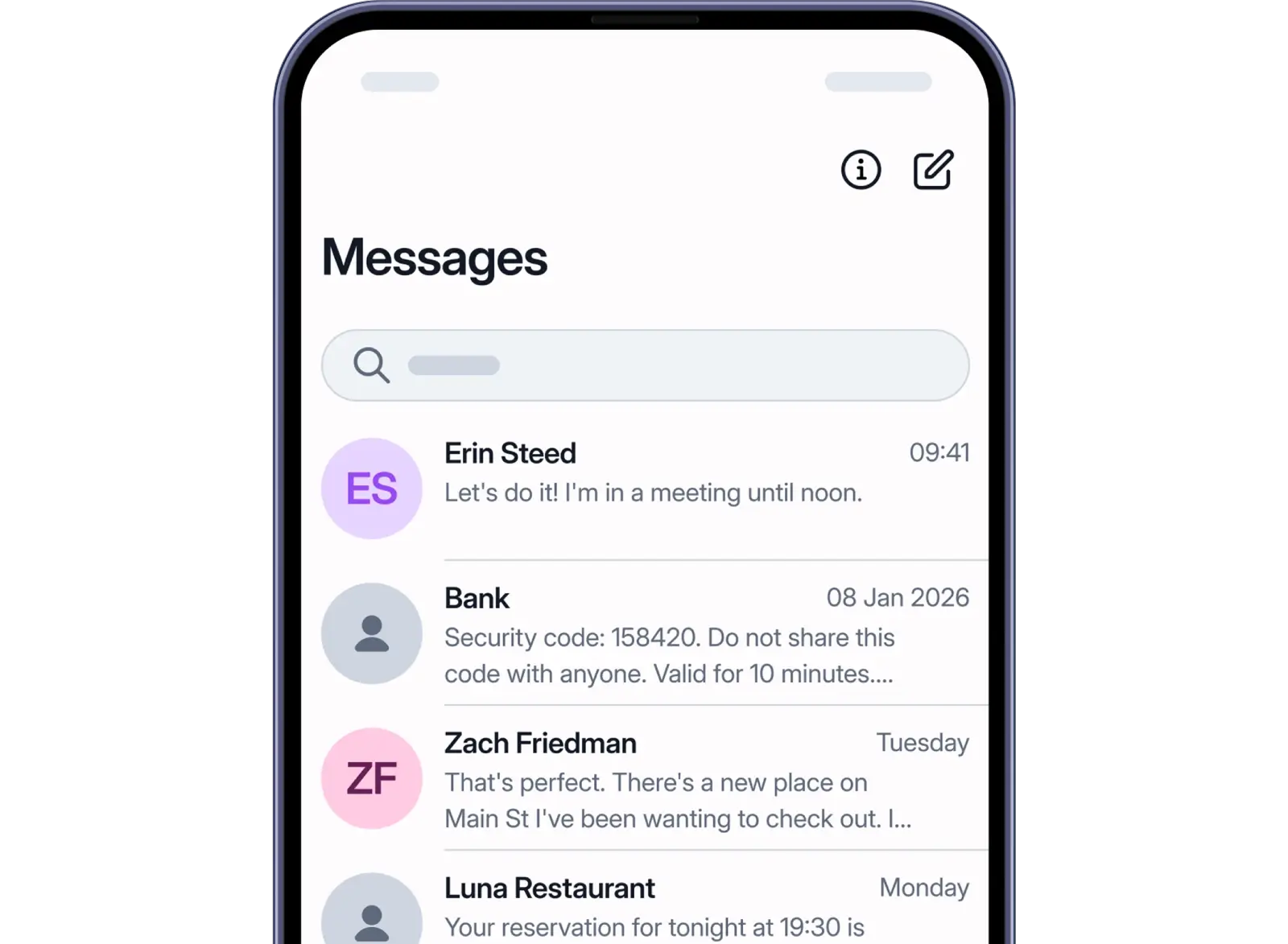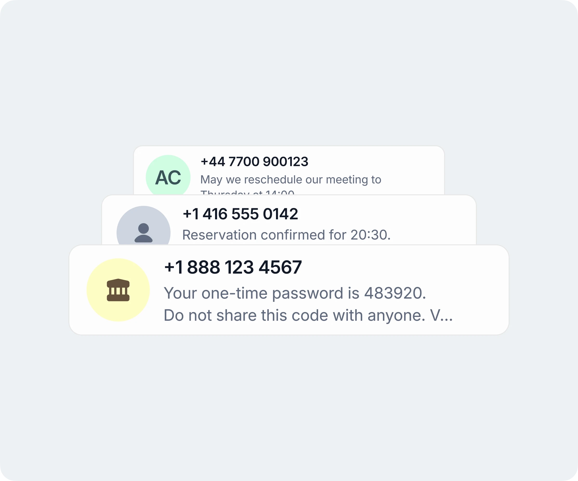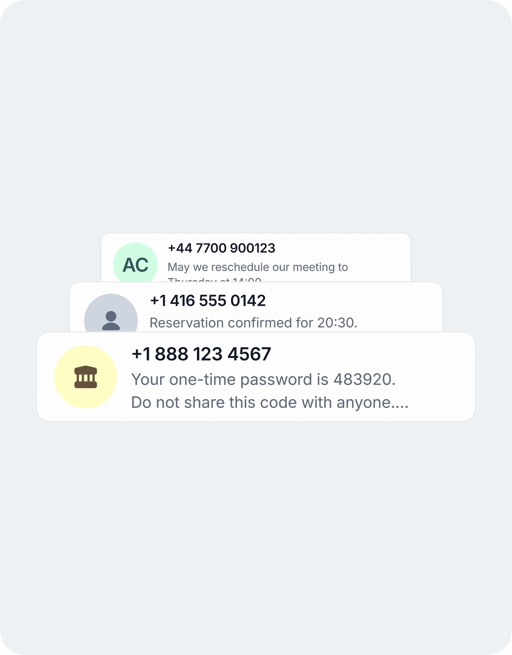 必要に応じて、ワンタイムパスワードや重要な認証メッセージを受信可能です。
