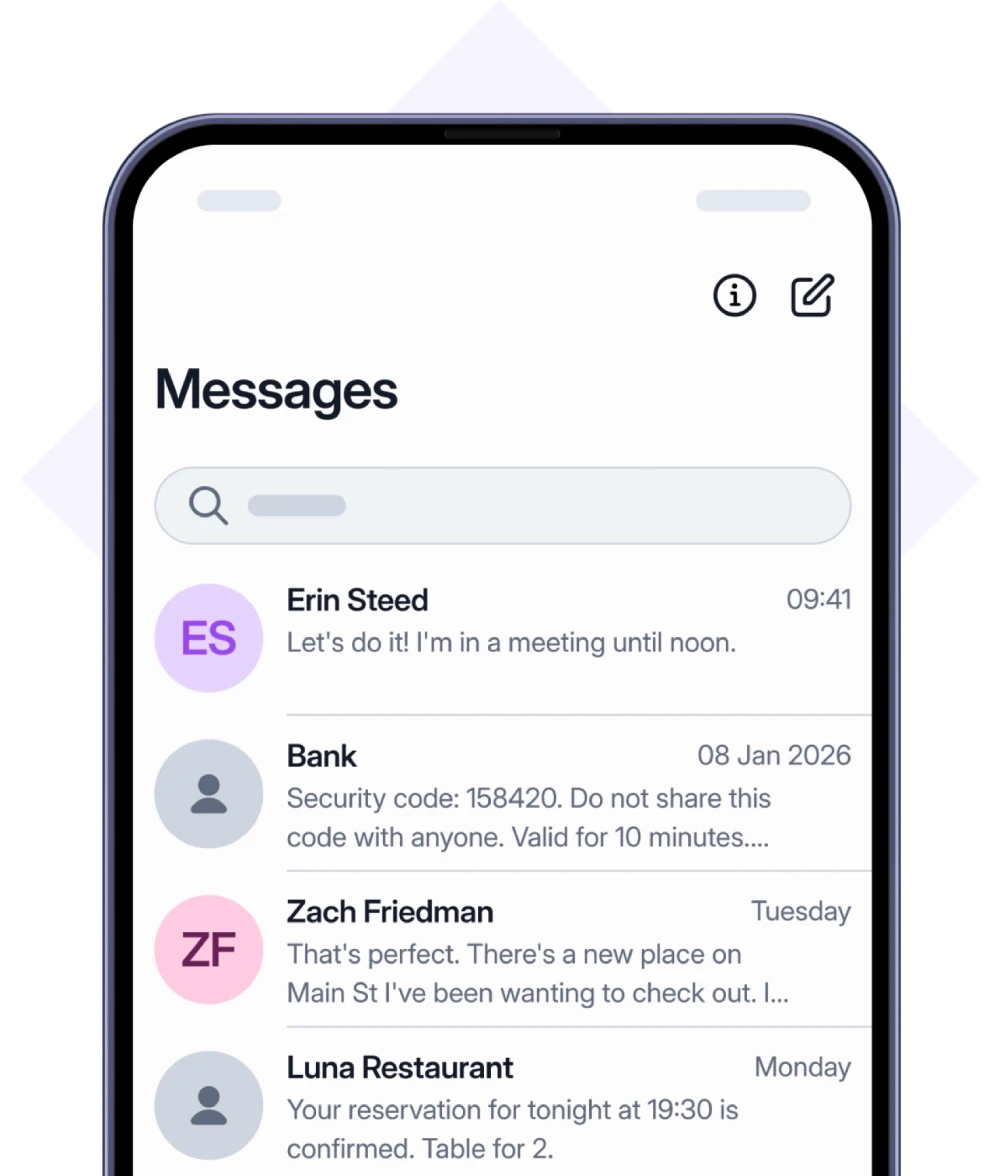 いいえ。認証済みの電話番号宛てのSMSは、Roamlessアプリ内では受信できません。認証済み番号に送信されたSMSは、端末の標準メッセージアプリ(例:メッセージアプリ)で受信されます。