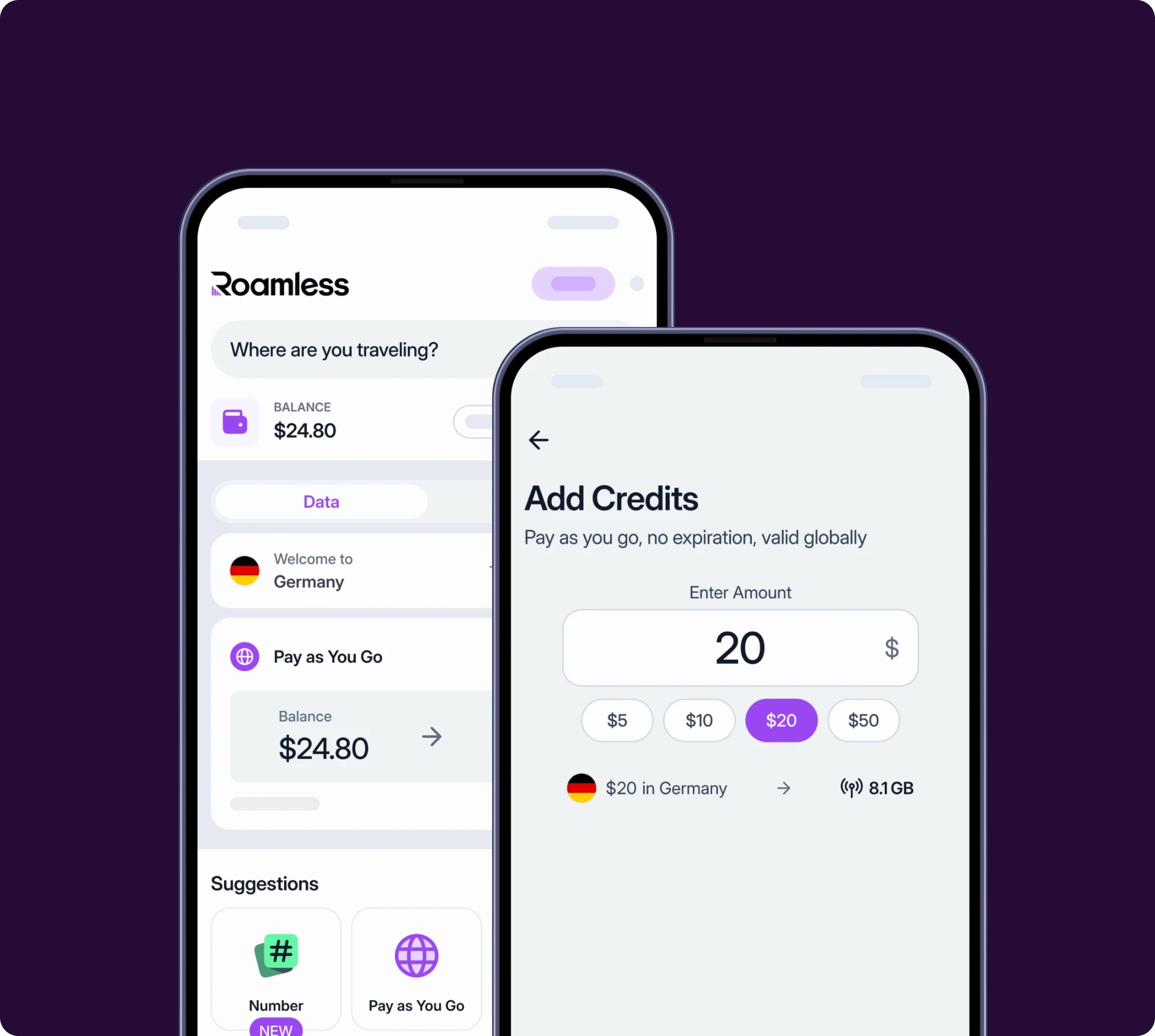 Roamless operates on a pay as you go model, which means you only pay for what you use. It provides mobile data, international calls, and SMS at rates significantly lower than traditional roaming services. This way, a single balance covers all your mobile connectivity needs without the high costs of roaming.